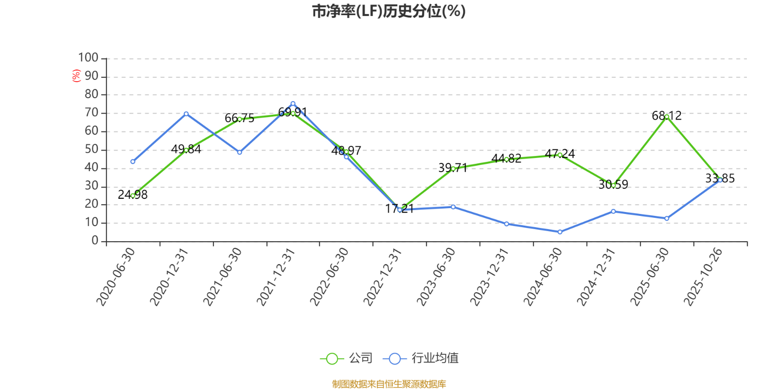 市盈率、市净率为负时,不显示当期分位数我要配资,会导致折线图中断。