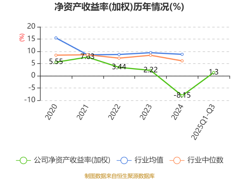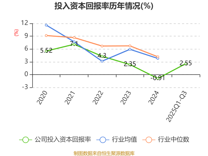 盈利能力方面, 2025年前三季度公司加权平均净资产收益率为1.3%,同比上升2.64个百分点。公司2025年前三季度投入资本回报率为2.55%,较上年同期上升1.08个百分点。
