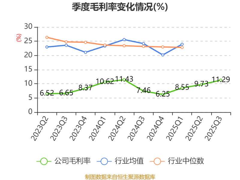 资产重大变化方面,截至2025年三季度末,公司货币资金较上年末增加315.08%,占公司总资产比重上升3.24个百分点;在建工程合计较上年末减少6.62%,占公司总资产比重下降3.09个百分点;固定资产较上年末增加22.77%,占公司总资产比重上升2.74个百分点;存货较上年末增加2.71%,占公司总资产比重下降2.07个百分点。